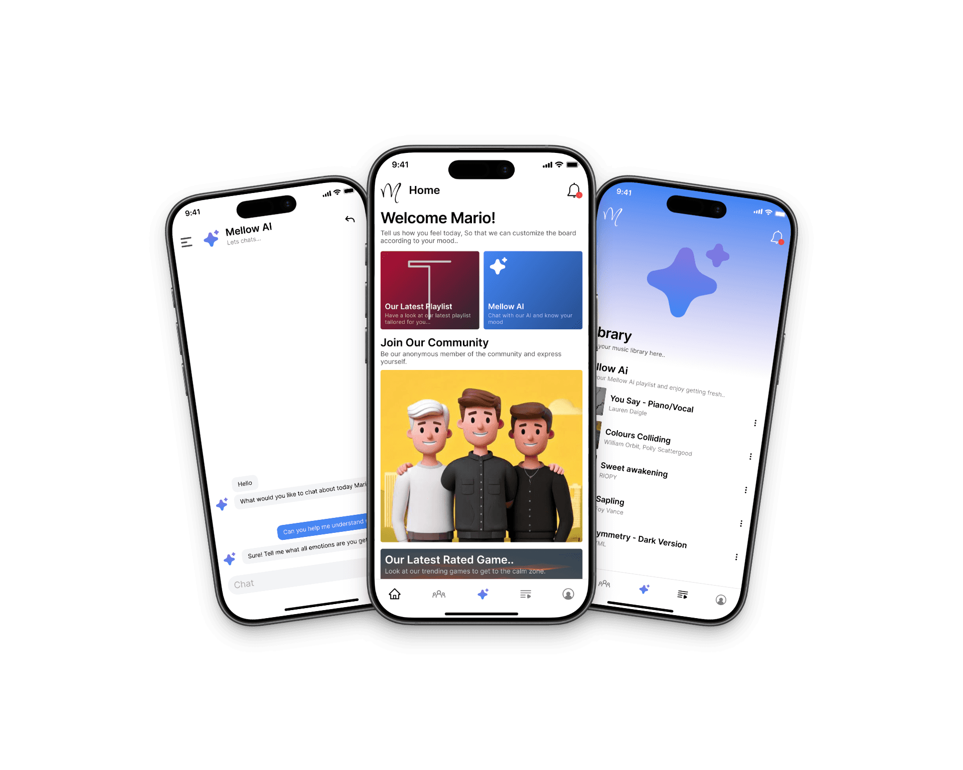 Explored how mood tracking, music therapy, and anonymous community features can support emotional self-awareness and daily engagement.